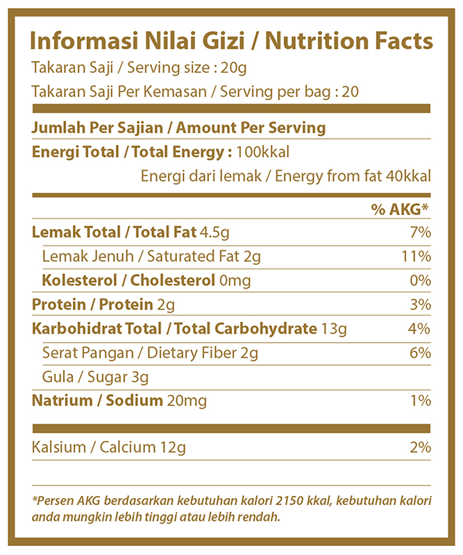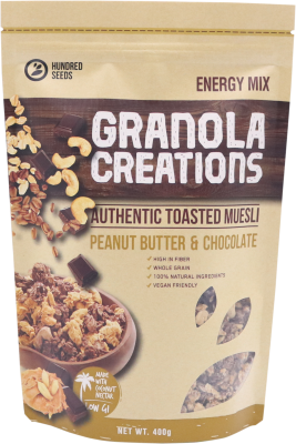 Rolled oats, coconut sugar, coconut oil, peanut butter (6%), cashew, desiccated coconut, rice flour, sugar cane (contains sulfite), dark chocolate (2%), cocoa powder (1%), sea salt.